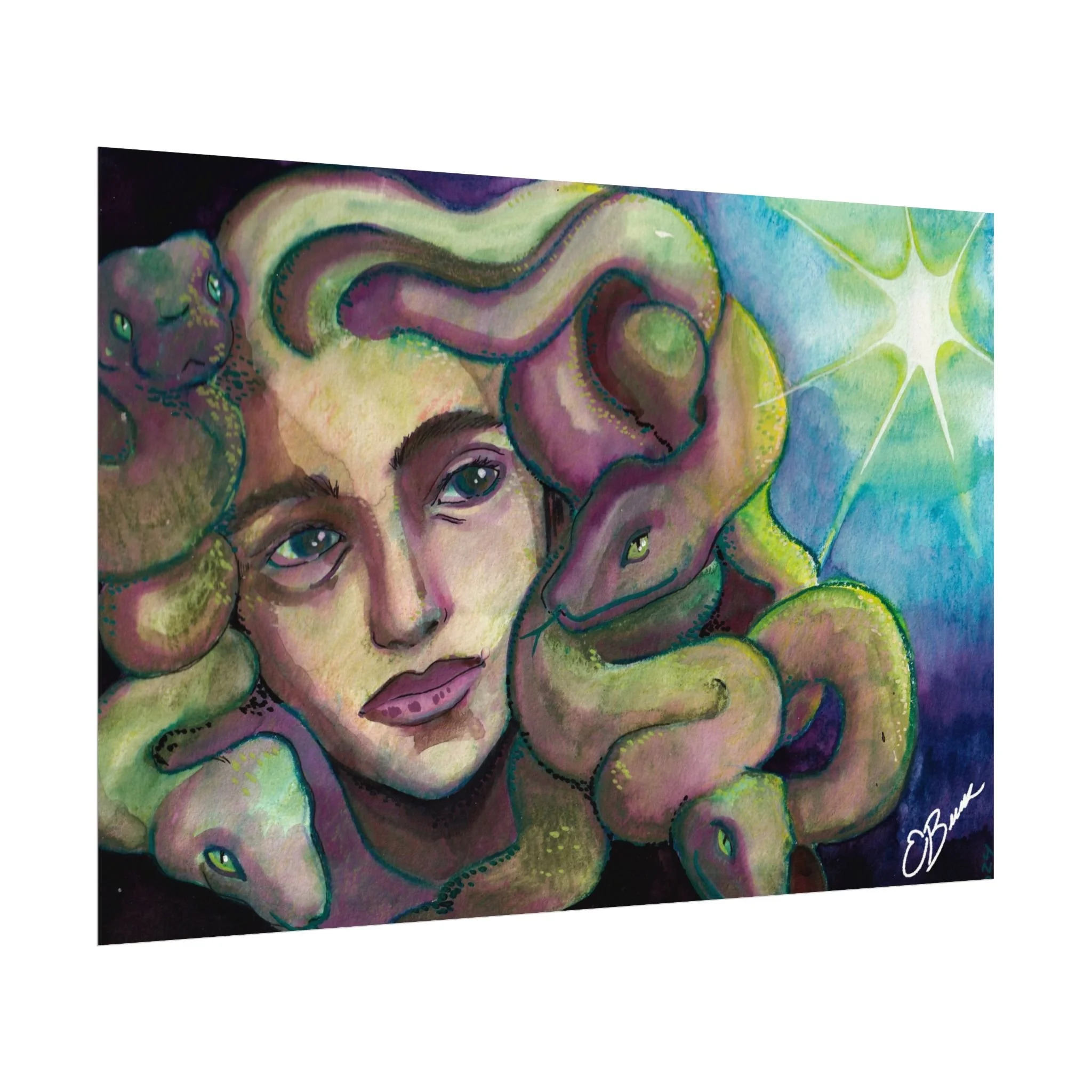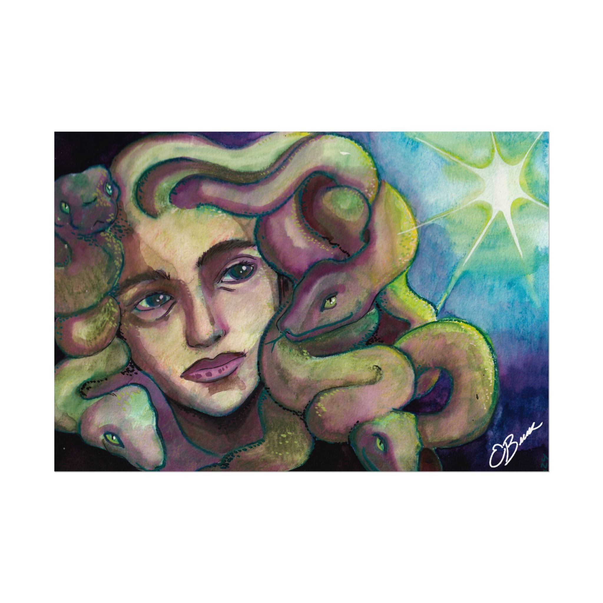 Medusa Watercolor Matte Poster — Textured Mythical Art Print